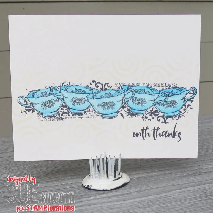 ONE (1) package of TEA CUP ROW - ARTSY BORDER clear stamp in the Shery Russ Designs line. There is 1 piece of clear stamp in the package. The border stamp is approx. 5 1/4 inches wide and 1 1/4 inch tall.
