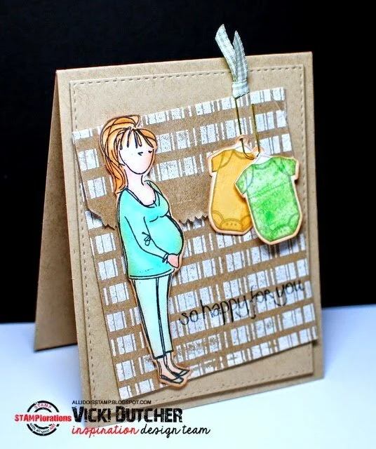 ONE (1) package of BABYBUMP clear stamp set in The Bee's Knees line. 9 clear stamps in a 4x6 backing sheet. For your reference, the pregnant mom stamp is approx. 1-1/4 inches wide and 4-5/16 inches tall; the "so happy for you" sentiment is approx. 2-1/4 inches wide and 1/2 inch tall.